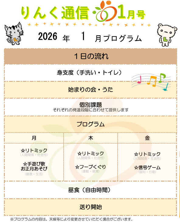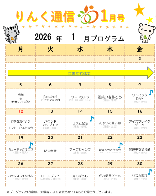 それでは1月の予定をご紹介します✨